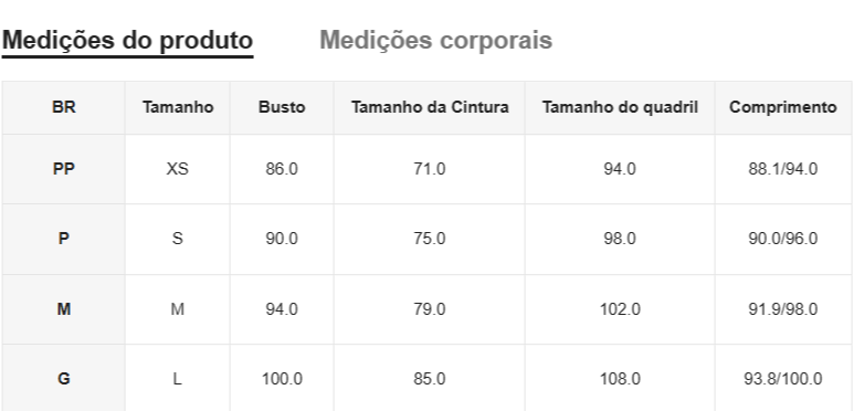 Disponível no tamanho PP, P, M e G, garantindo o ajuste perfeito para cada tipo de corpo.