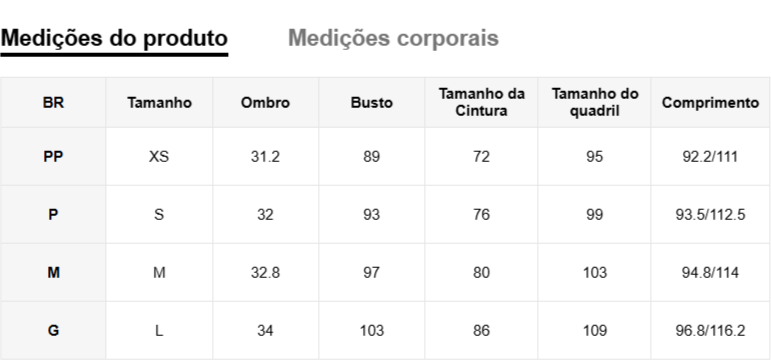 Disponível nos tamanhos PP, P, M e G, garantindo o ajuste perfeito para cada tipo de corpo.