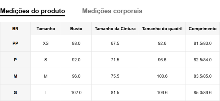 Disponível no tamanho PP, P, M e G, garantindo o ajuste perfeito para cada tipo de corpo.