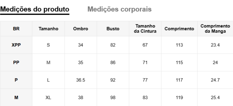Disponível nos tamanhos XPP, PP, P e M, garantindo o ajuste perfeito para cada tipo de corpo.