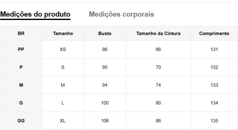 Disponível no tamanho PP, P, M, G e GG, garantindo o ajuste perfeito para cada tipo de corpo.