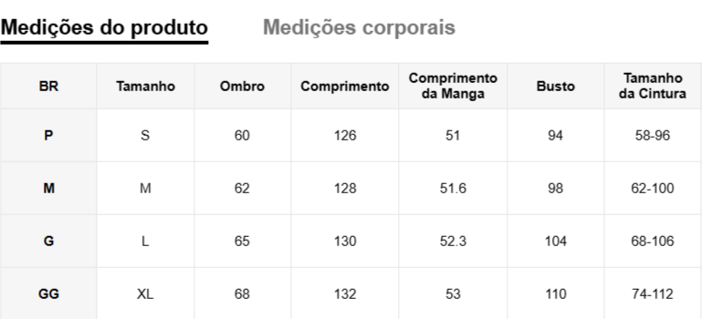 Disponível nos tamanhos P, M, G e GG, garantindo o ajuste perfeito para cada tipo de corpo.