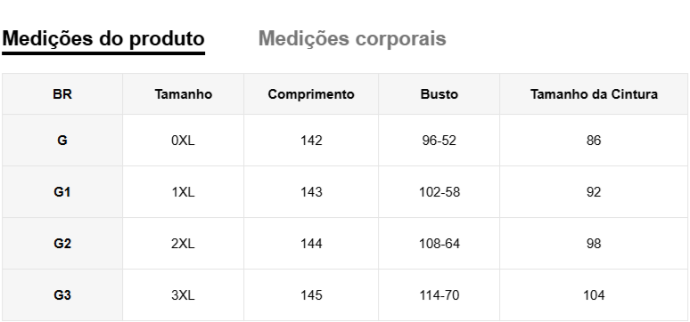 Disponível nos tamanhos G0, G1, G2 e G3, garantindo o ajuste perfeito para cada tipo de corpo.