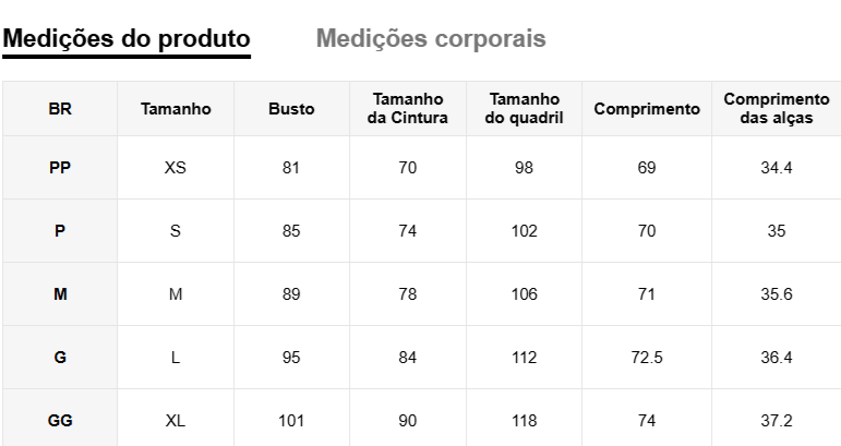 Disponível nos tamanhos PP, P, M, G e GG, garantindo o ajuste perfeito para cada tipo de corpo.