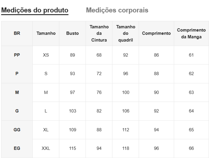 Disponível nos tamanhos PP, P, M, G e GG, garantindo o ajuste perfeito para cada tipo de corpo.