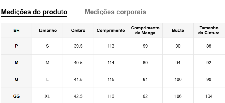 Disponível nos tamanhos P, M, G e GG, garantindo o ajuste perfeito para cada tipo de corpo.