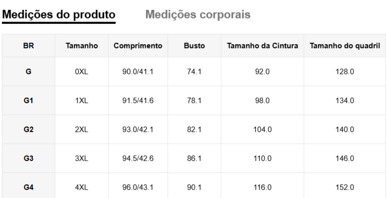 Disponível nos tamanhos G0, G1, G2, G3 e G4, garantindo o ajuste perfeito para cada tipo de corpo.