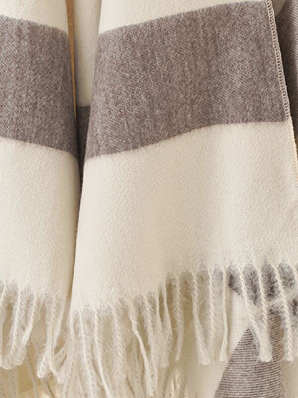 Design moderno, cachecol reversível, pode ser usado dos dois lados, tipo xale ou echarpe com acabamento nas barras. Perfeito para te deixar moderna e elegante em seu dia a dia. Acabamento impecável e detalhes que adicionam sofisticação ao seu visual.